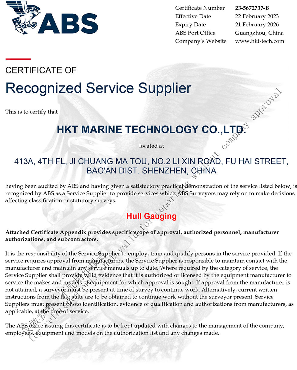 HKT Marine Technology Co., Ltd established in 2009 in Shenzhen China , with branch office at Zhoushan, dedicate to enhancing vessel safety, efficiency, and operational reliability, now we have developed as one of the best marine service companies in China.Hull Department(Steel Construction), For UTM service, we are approved by ABS, DNV, LR, BV, NK, KR, RINA and IRS,CCS, RMRS, our RIT (Remote Inspection Technique) performed by rope access in COT on tankers ships.Besides assisting UTM and close up survey, rope access team is also applied in painting jobs by climbing, instead of staging. Automation DepartmentMost of our electric and electronic engineers were worked as ETO onboard, and some of them had been working as maker service engineers for a long time, Who are professional in various of control system. Especially for those obsolete system, we can provide alternative solutions.Mechanical DepartmentOur mechanical teams specialize in ME /AE overhaul, hydraulic crane and steering gear, deck machineries overhaul and service, Aircon and provision plant compressor repair and overhaul, heat exchanger cleaning, etc.Spare Part DepartmentWith an abundant source worldwide supply chain, no matter genuine, OEM, or alternative parts, we can quickly respond and support for the spares of main engine, auxiliary engine, boiler, air compressor, air handling unit, deck machinery, steering gear, oil purifier, pumps, valves, and so on.